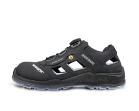 Robust sikkerhedssandal i slidstærkt microfiber/tekstil med dobbelt lukning, ProNose og ESD-godkendelse. Inkluderer composite tåværn og fiber sømværn.