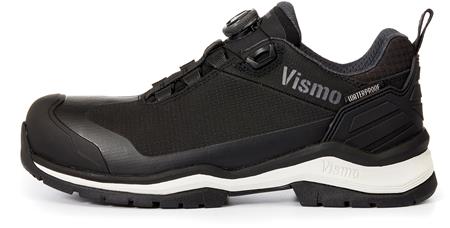 Sikkerhedssko fra Vismo med skridhæmmende gummi ydersål, NRG55 mellemsål for stødabsorbering og vandtæt membran. Udstyret med BOA Fit System for nem lukning og optimal pasform.