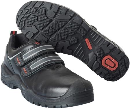 Sikkerhedssko med lynlukning, tåkappe af aluminium, sømværn af specialtekstil og slidsål af gummi. Godkendt efter EN ISO 20345: 2011, sikkerhedsklasse S3 SRC, HRO, WRU.