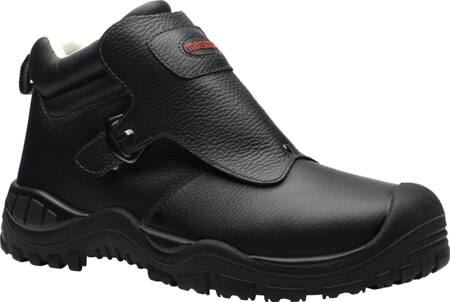 Sikkerhedsstøvle med anatomisk formet tåkappe af aluminium og sømværn af stål. Skridsikker PU/gummi-løbesål, udtagelige indlægssåler og skindfor. Velegnet til knælende arbejde.