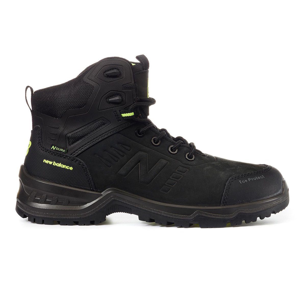 New Balance Contour sikkerhedsstøvle med NB Comfort Insert, slidstærke gummi ydersåler, nubuck læderoverdel, Ndure slidstyrke, kraftig tåbeskyttelse og YKK lynlås.