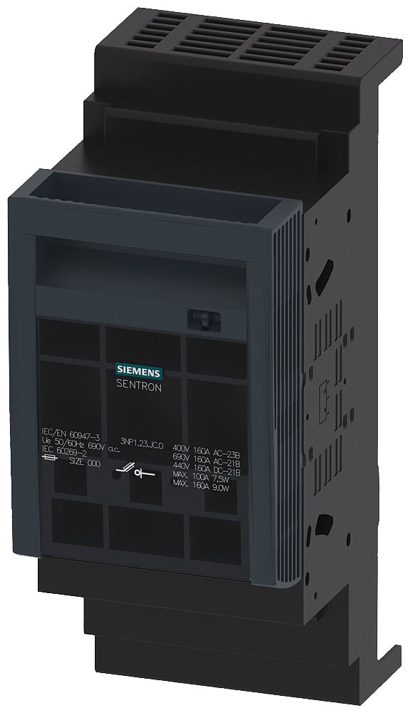 SENTRON Sikringsafbryder 3NP1, 3-polet, NH000, 160 A til Rittal busbarsystem 60 mm, box terminal cover str. 32/70 mm.