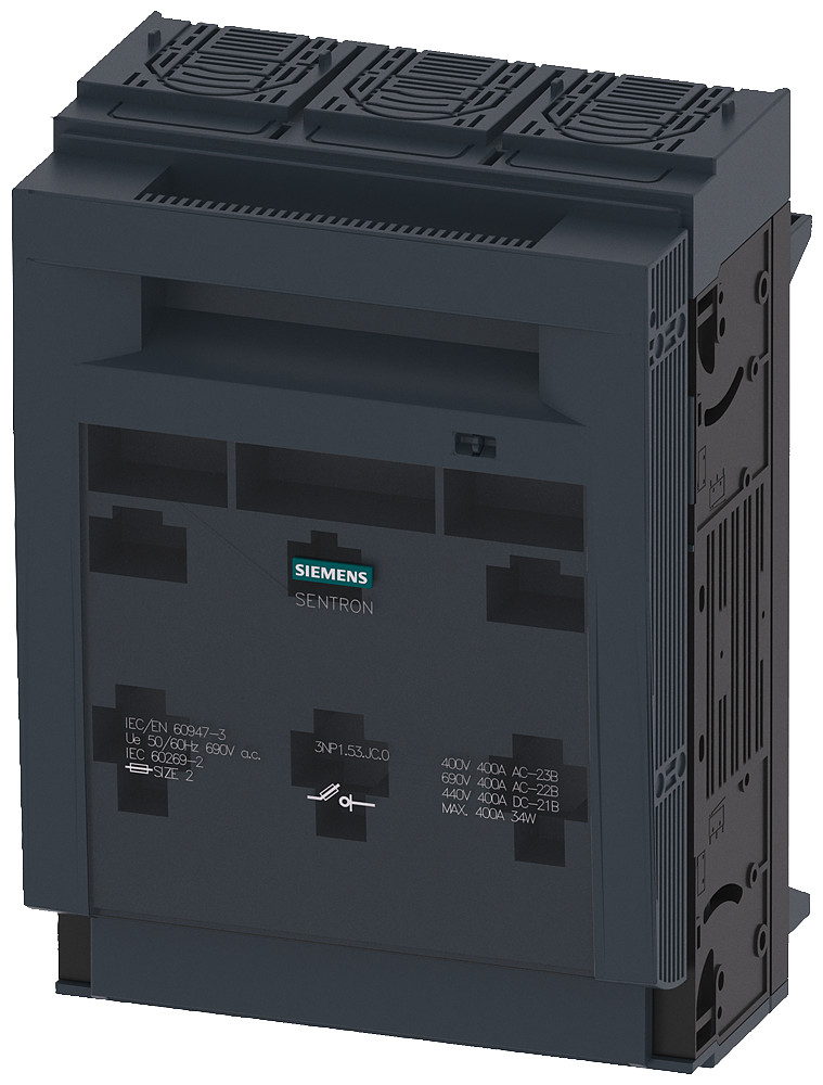 SENTRON sikringsafbryder 3NP1, 3-polet, NH2, 400 A til Rittal busbarsystem 60 mm flad terminaldæksel str. 32/70 mm.
