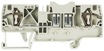 Grå Wieland WKFN 4FSI sikringsklemme med fjeder tilslutning, 4mm² nominelt kvadrat og 6mm bredde.