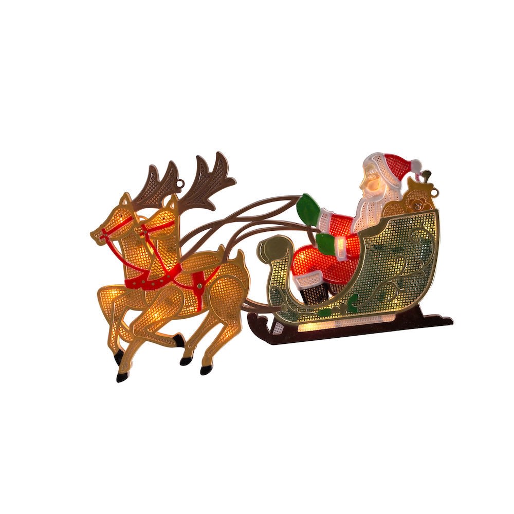 Skab julestemning med denne charmerende silhuet af rensdyr og julemand med 20 varme hvide pærer. Ideel til vinduesdekoration.