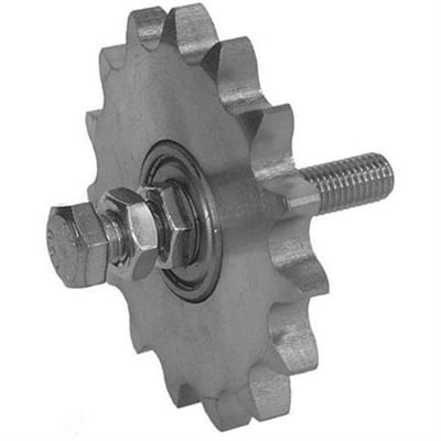 Komplet kædestrammehjul med pladekædehjul, indsatsleje, bolt og møtrikker. Til rullekæde i europæisk standard (BS). Se datablad for mere info.