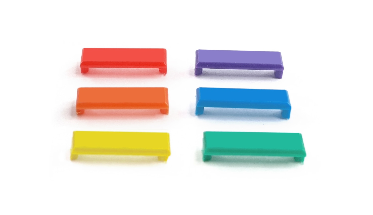 Simply45 Keystone ID Bars i 6 farver. Hold nemt styr på dine netværksforbindelser med farvekodning. Farver: Rød, orange, gul, lilla, blå og grøn.