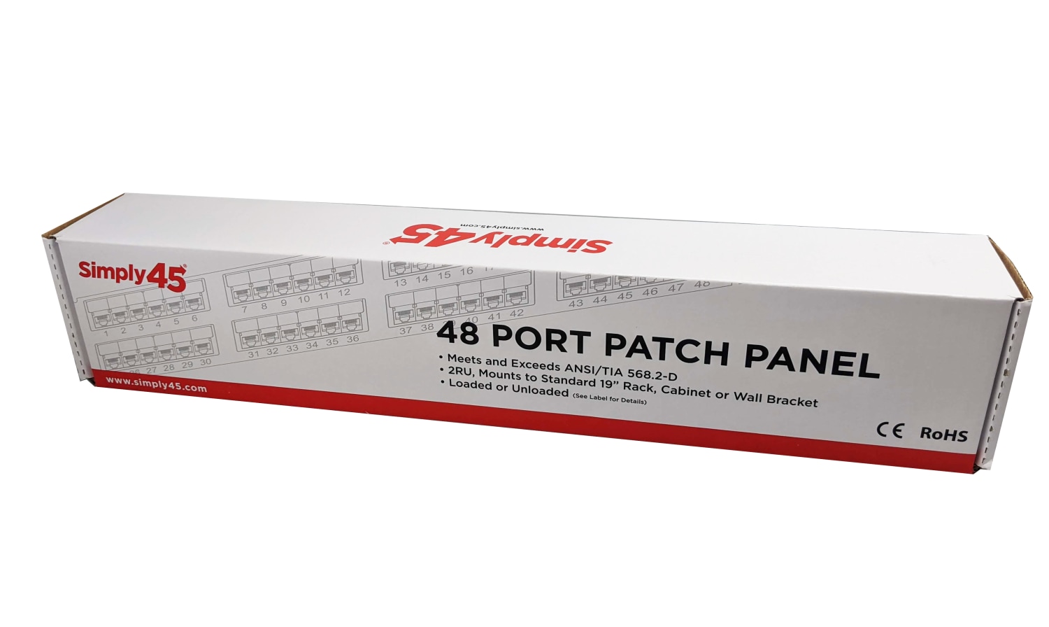 Simply45® Rack Mount RJ45 110-stil patchpaneler monteres nemt på standard 19” rack.