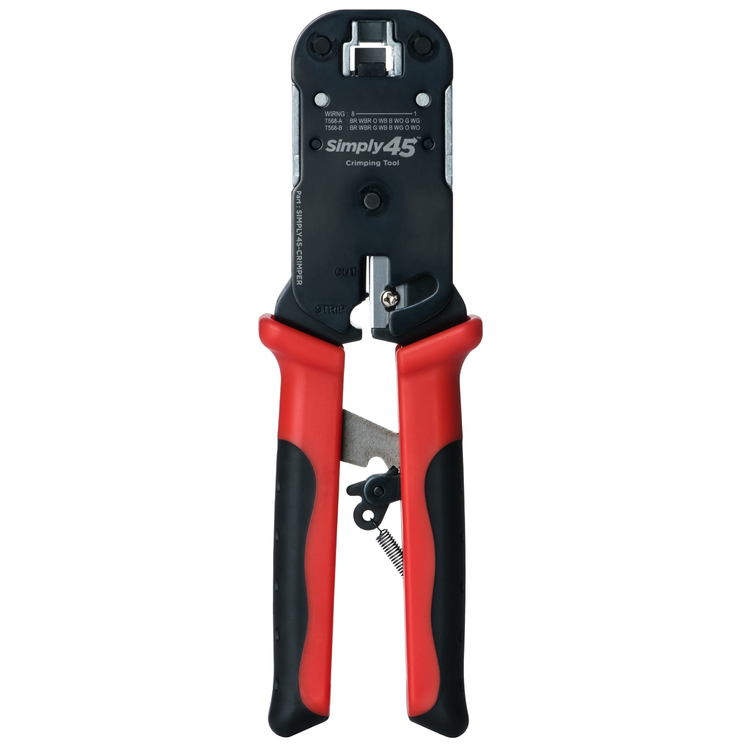 Simply45® S45-C101 ProSeries Crimp Tool bruger synkroniserede håndtag, der komprimeres sammen under krympecyklussen. Denne synkronisering leverer konsekvent og jævn kraft direkte til stikdåsen og trådklipningen. Resultatet er en glattere, hurtigere og lettere krympningsproces.