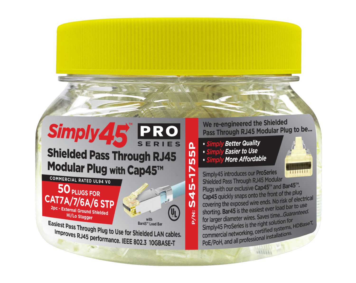 Simply45 RJ45 Modular Pass-Through stik, CAT6/6a/7/7a, skærmet