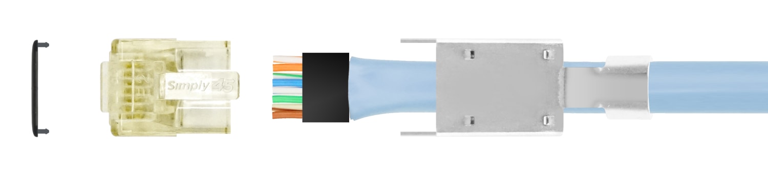 Med dette stik medfølger Cap45®, et isoleringsdæksel, der monteres på forsiden af det gennemgående RJ45-stik efter terminering. Cap45® dækker de udsatte ledningsender og forhindrer effektivt utilsigtede elektriske kortslutninger, som kan opstå på grund af forkert trimmede ledere.