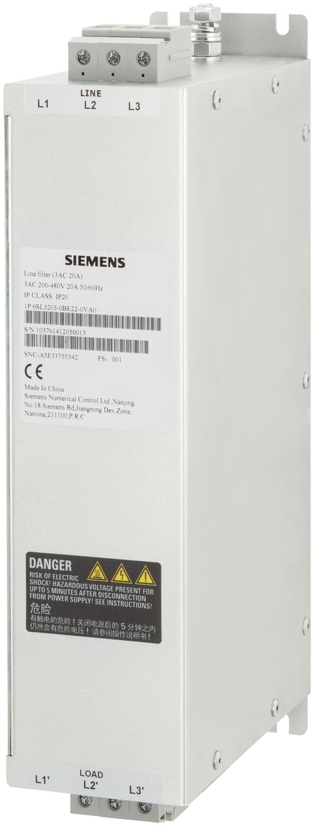 Dette SINAMICS V line filter er designet til at fungere med en 1 AC 200-240V -15%/+10% input og er kompatibelt med Sinamics V90. Filteret har dimensionerne 59x155x53 mm (BxHxD).