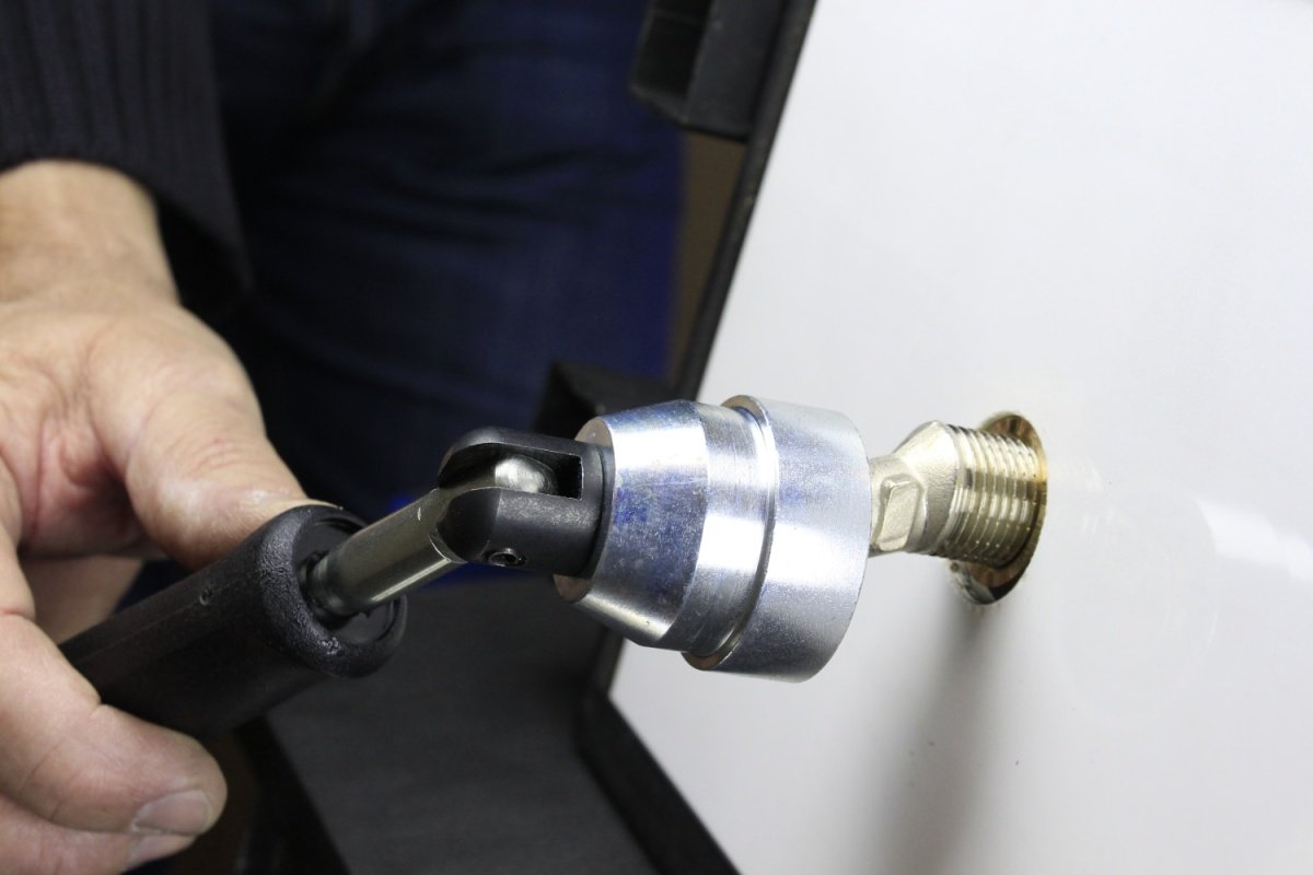 Special top til montering/justering af excentriske vægfittings. Unik opbygning med 10-rullers teknologi skåner gevindet og giver et kraftigt greb.