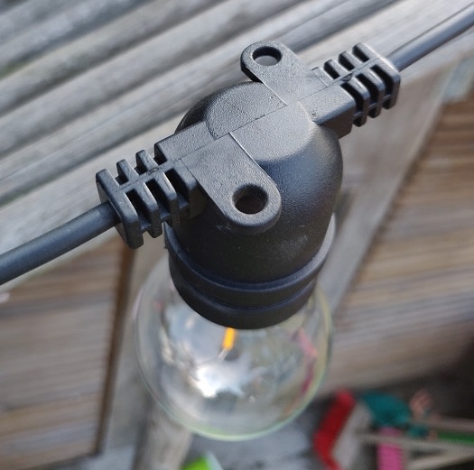 Lyskæden er et startsæt, hvilket betyder, at den indeholder alt, hvad du behøver for at komme i gang. Den er robust og velegnet til udendørs brug med en IP44-klassificering, der sikrer beskyttelse mod vandstænk fra alle retninger.