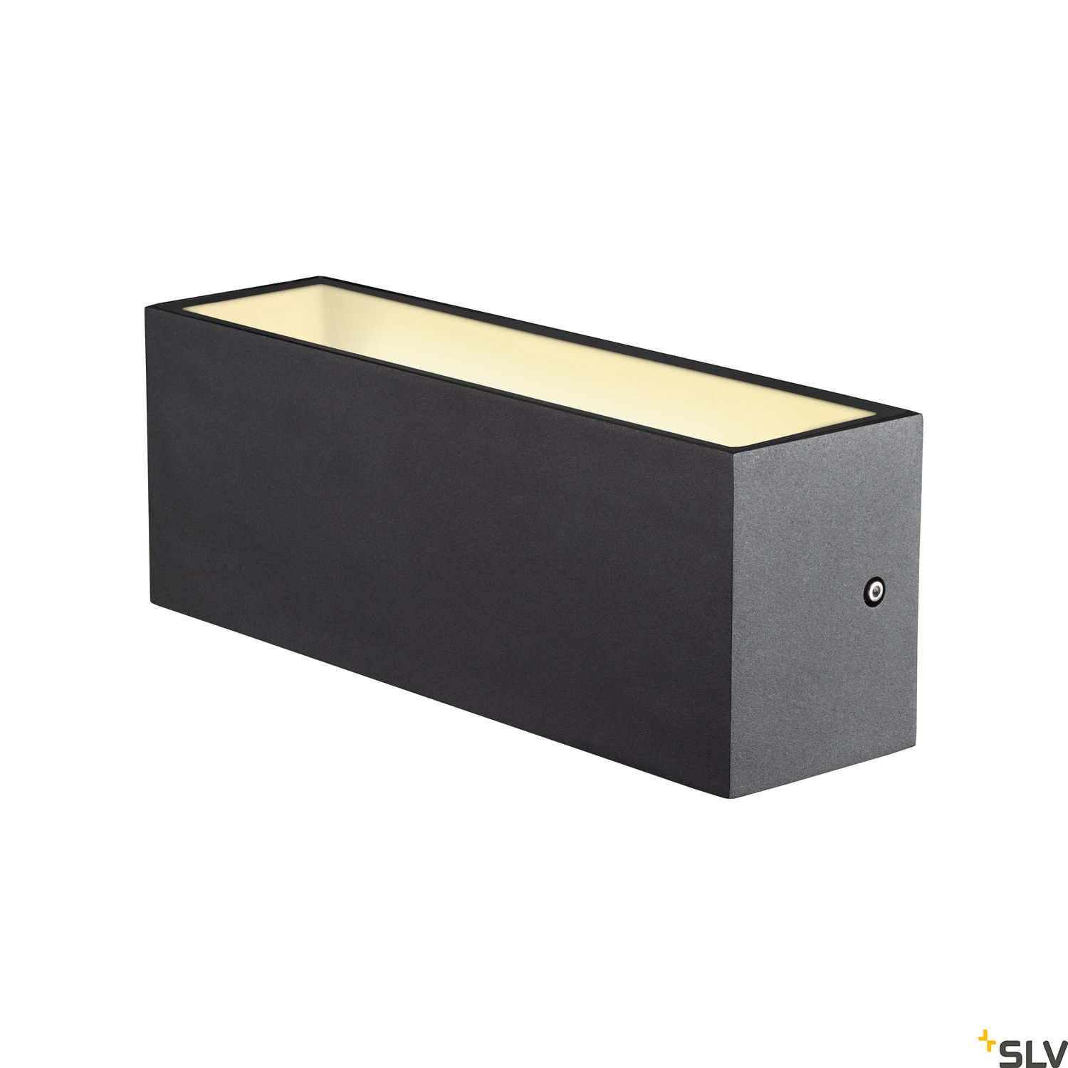 Moderne og karakteristisk antracitfarvet væglampe fra SLV's SITRA-serie. Perfekt til udendørs brug med indirekte belysning og justerbar lysfarve.