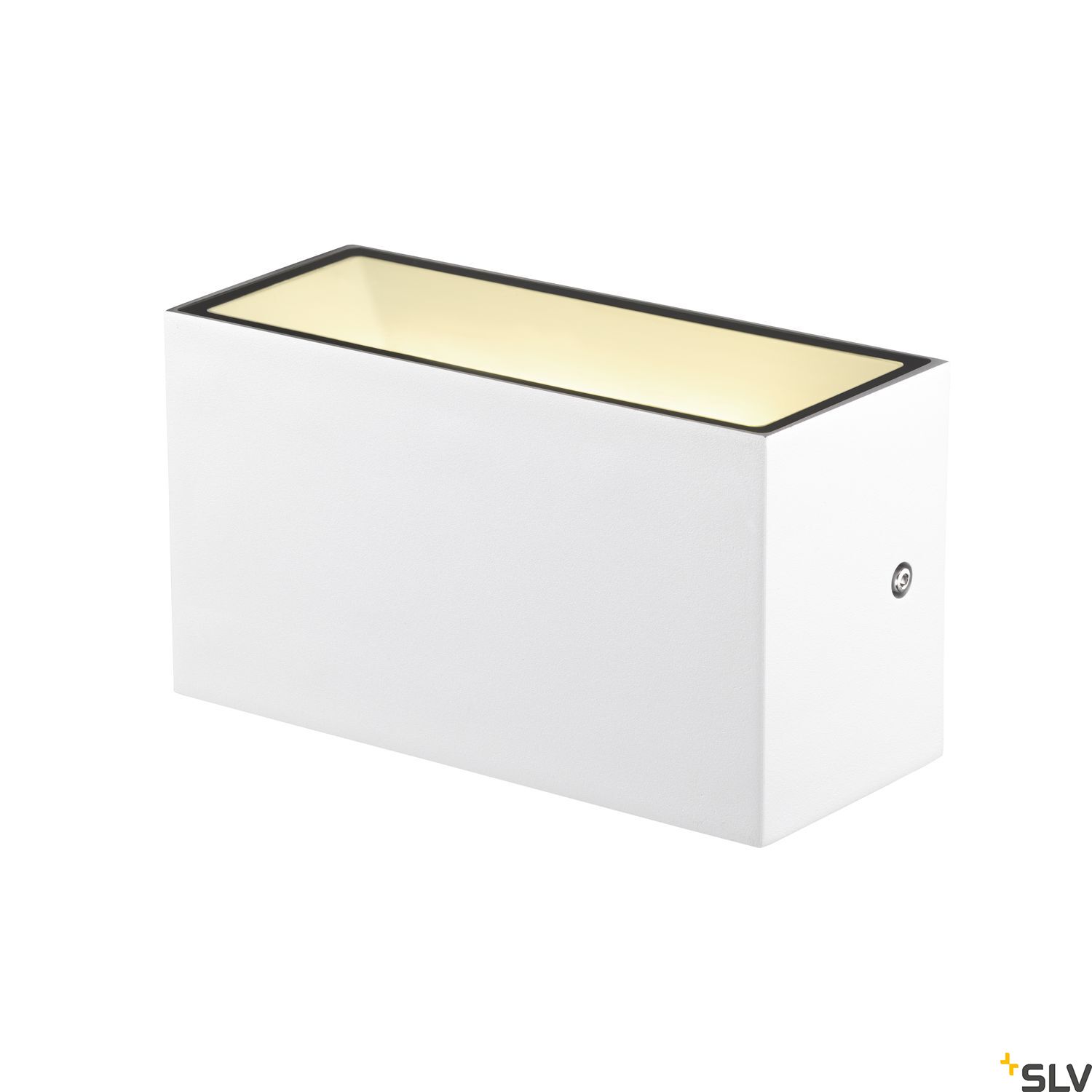 Elegant og moderne udendørs væglampe fra SLV's SITRA-serie. Den hvide SITRA CUBE M UP/DOWN væglampe skaber en stemningsfuld indirekte belysning på enhver facade.