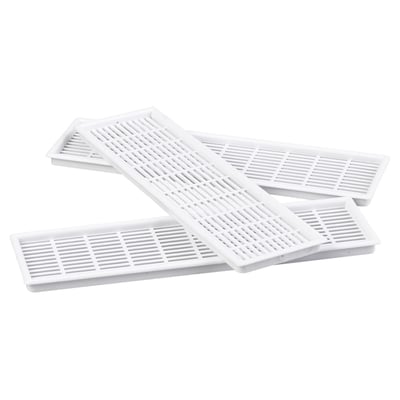 Skabsristsæt i hvid plast til montering i skabe og indvendige døre. Sikrer optimal udsugning med en luftmængde på 25 cm². Leveres i en pose med 3 stk.