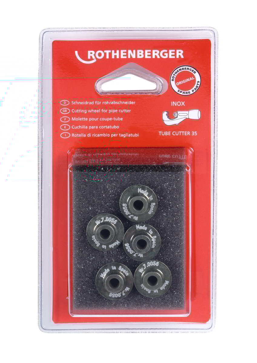 Skærehjul til INOX TC35t. Originalt Rothenberger skærehjul af højlegeret, hærdet stål. Garanterer et præcist, retvinklet snit.