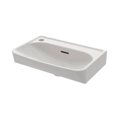 Håndvask med glaseret underside, forberedt til konsolmontage. Ideel til mindre badeværelser, hvor kvalitet, detaljer og funktion er i fokus.