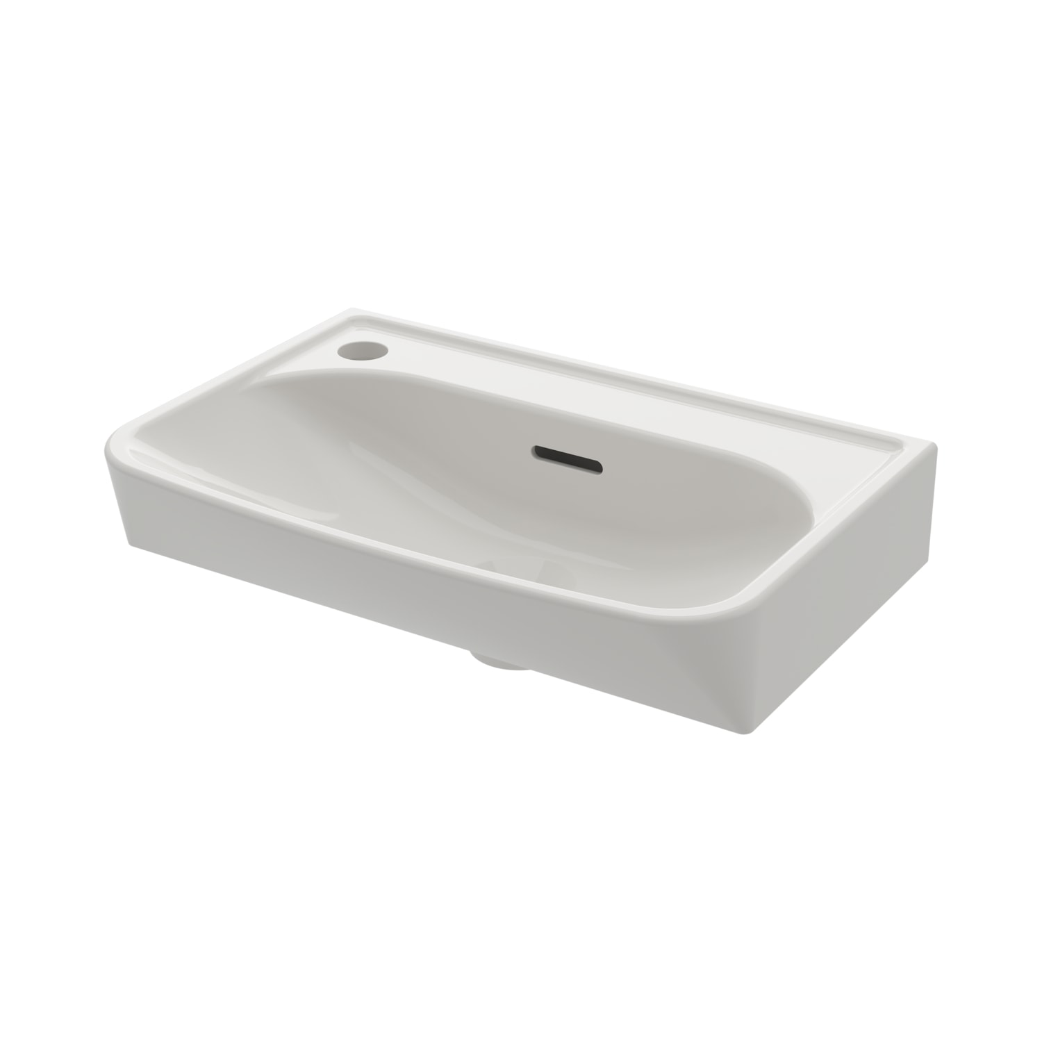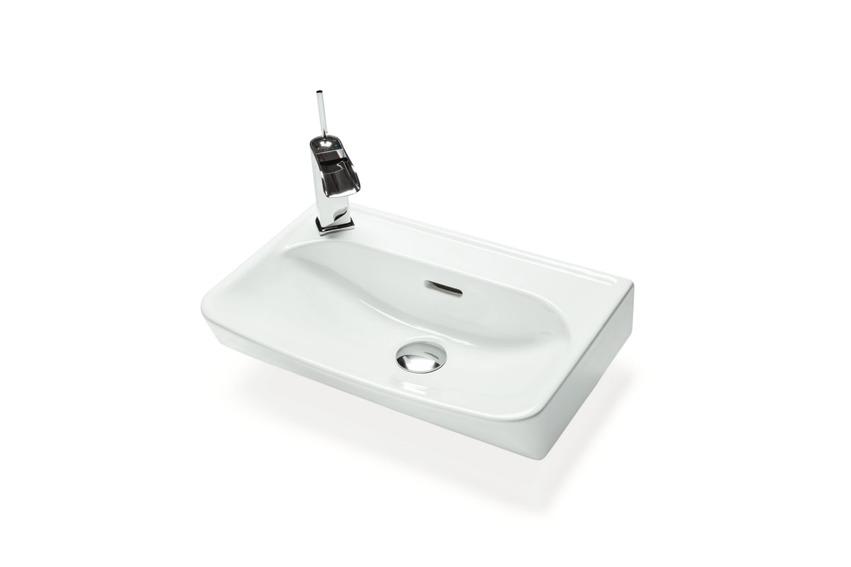 Skapa håndvasken er designet med en glaseret underside og forberedt til konsolmontage. Denne håndvask er en del af Skapa-serien, der er udviklet til mindre badeværelser, uden at gå på kompromis med kvalitet og funktionalitet.