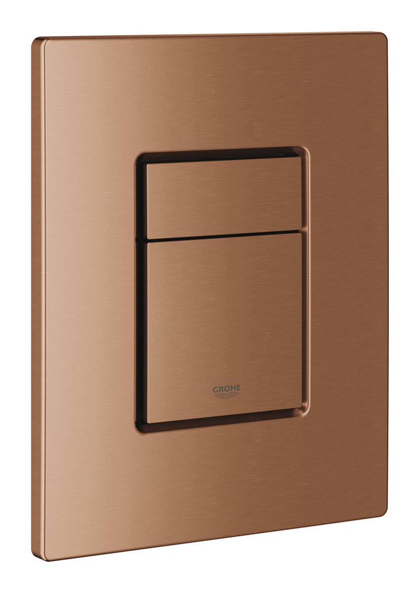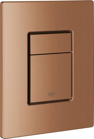 Grohe Skate Cosmopolitan betjeningsplade til 2-skyls- og start/stop betjening. Passer til lodret eller vandret montage. Mål: 156 x 197 mm. Farve: Børstet kobber.