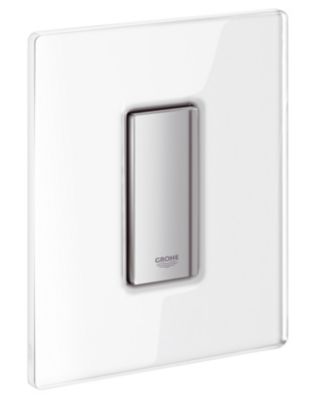 Skate Cosmopolitan betjeningsplade fra Grohe, der kombinerer stil og funktionalitet i et elegant design. Betjeningspladen er udført med en overflade af sikkerhedsglas og en krom finish, der tilfører et moderne touch til ethvert badeværelse.
