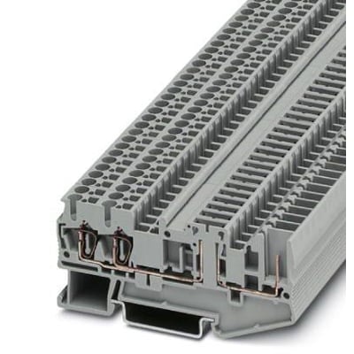 Skilleklemme med fjederkraft/stiktilslutning, tværsnit på 0,08 mm2 - 4 mm2, mærkestrøm: 20 A, farve: grå og beregnet for DIN skinne.