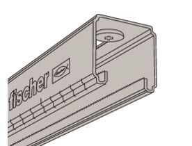 Fischer FLS 17/1.0 montageskinne med varierende langhuller (8,5 mm og 10,5 mm) sikrer optimalt valg af dybel eller stålanker. Én skinnebredde (31 mm) til hele programmet.