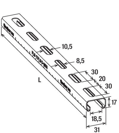 Montageskinnen FLS 17/1.0 fra Fischer er designet med varierende langhuller i bredden 8,5 mm og 10,5 mm, hvilket sikrer det optimale valg af dybel eller stålanker i byggematerialet. Med en bredde på 31 mm, passer skinnen til hele FLS-programmet.