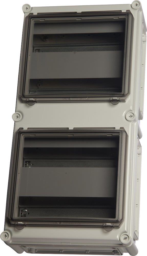 FIBOX EK MODUL skinnekasse med flangeblanketter til modulopbygning af mindre tavleanlæg. Måler 280 x 560 x 160 mm.