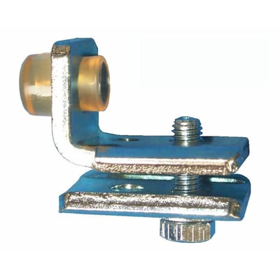 Elforzinket skinnestop med PVC buffer i stål. Sikrer stabil og sikker fastgørelse.