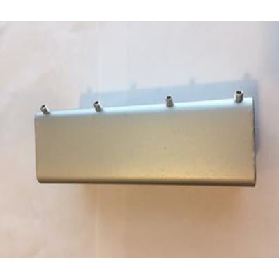 Samlemuffe til portskinne med 4 stk. 6 mm pinolskruer. Længde: 180 mm, Bredde: 65 mm. Fremstillet i stål, dracomet.