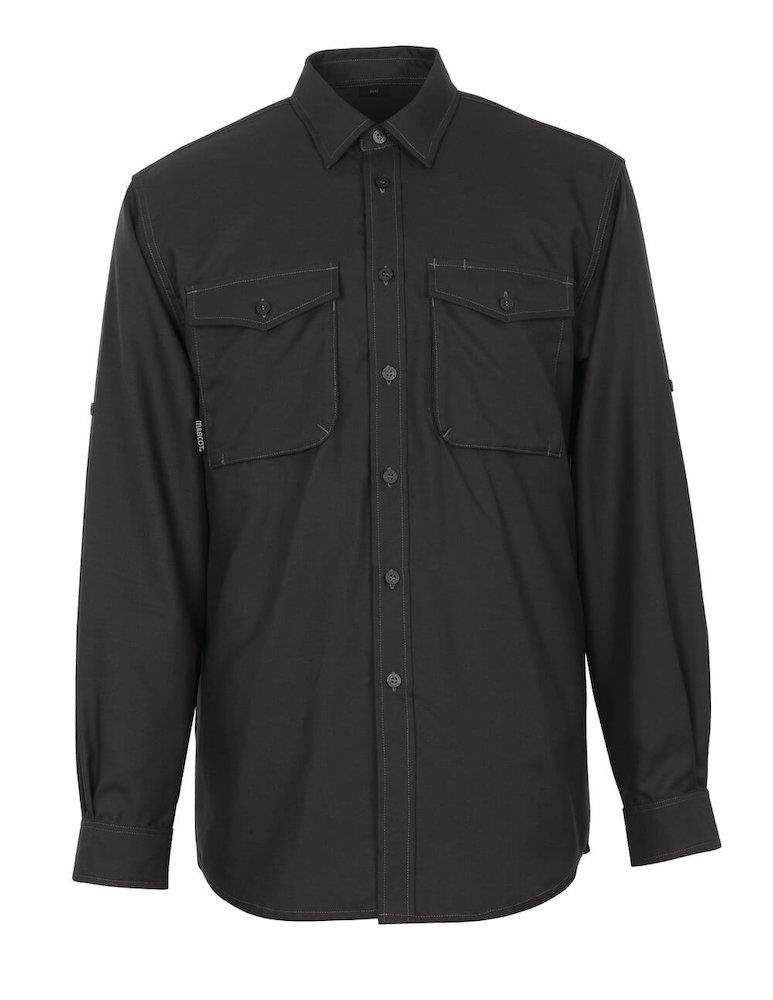 Skjorte i kropsnær pasform, der giver god bevægelsesfrihed. Med gennemgående stolpelukning med knapper, krave med skjult knap samt to brystlommer med klap.