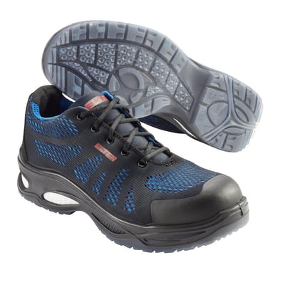 Let og sporty sikkerhedssko i åndbart mesh/tekstil. ESD-godkendt med komposit tåværn. Ideel til tørre indendørs miljøer med skridsikker og stødabsorberende sål.