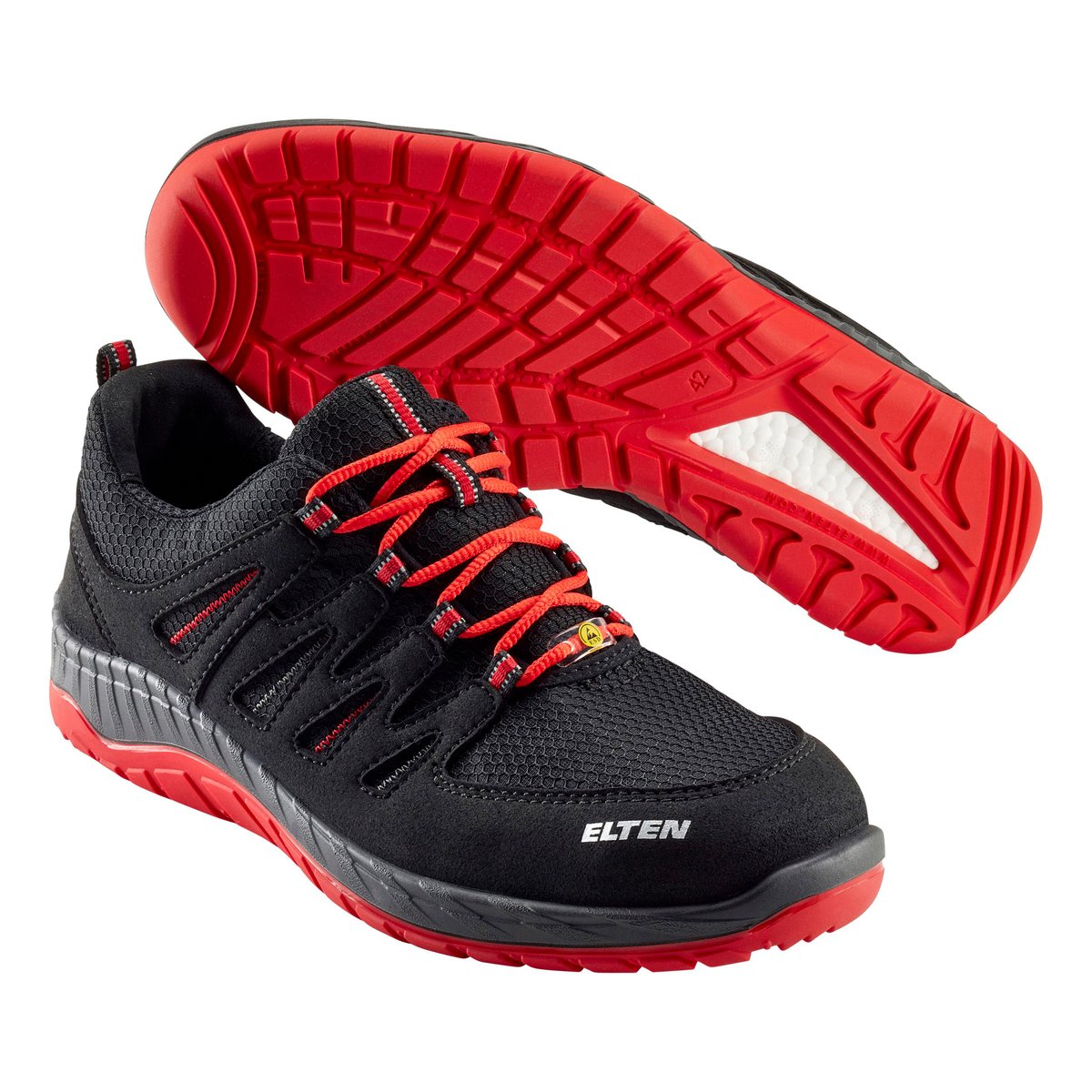 Let og sporty sikkerhedssko i slidstærkt, åndbart og vandafvisende microfiber/tekstil. ESD-godkendt, læderfri og med refleksdetaljer.