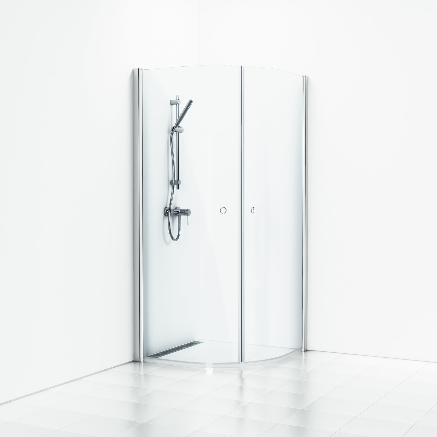 Skoga brusehjørne med moderne design giver et stilrent udtryk til badeværelset. Tærskelfri og handicapvenlig med 6 mm hærdet sikkerhedsglas.