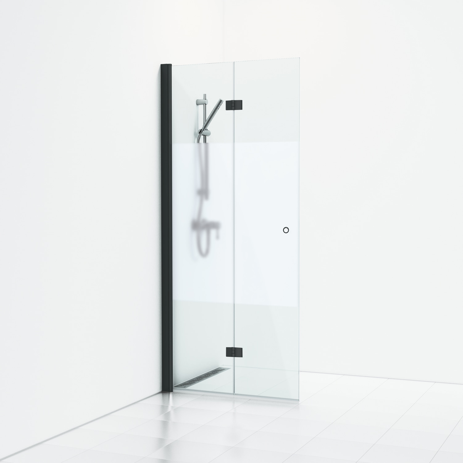 Skoga folde skærmvæg med moderne design. Skaber en stilren indramning af badeværelset. Med halvfrostet glas og integreret greb.