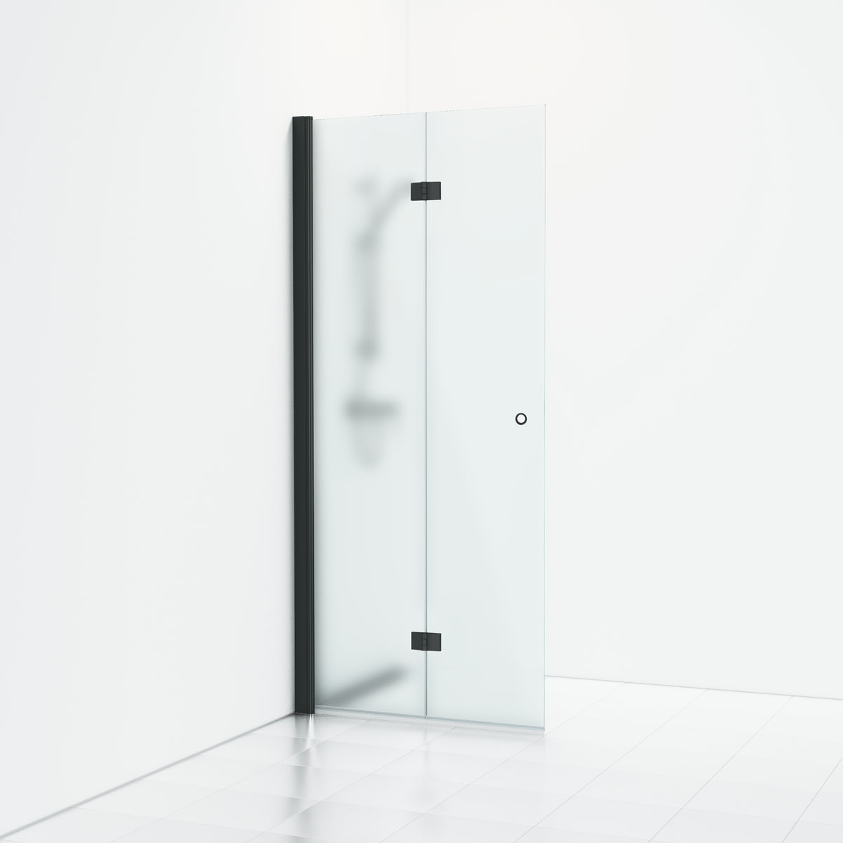 Skoga folde skærmvæg 87x3x198 med sort mat profil og frostglas samt integreret greb.