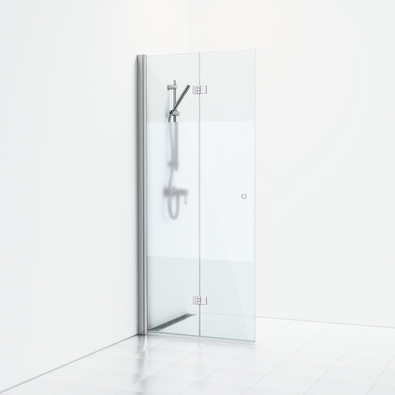 Skoga skærmvæg med moderne design giver et stilrent badeværelse. Foldedøren er tærskelfri og handicapvenlig med 6 mm hærdet sikkerhedsglas.