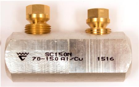 Knækbolt muffe 1 kV, der passer til både Al og Cu kabler (kl. 1 og 2). Til runde kabler (70-150 mm²) og sektorformede kabler (70-150 mm²).