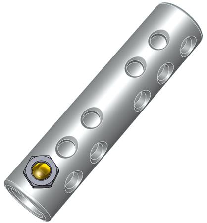 Knækbolt muffe 1-36 kV, der passer til både Al og Cu, kl. 1 og kl. 2 kabel. Til runde kabler 500-630 mm². Bolte i messing for lav friktion og skillevæg for at forhindre olielækage.