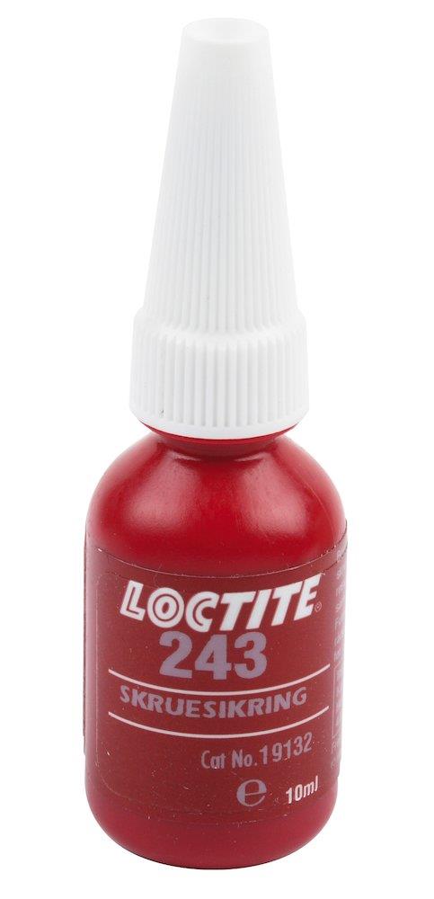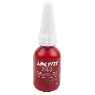 Loctite 243 er en medium styrke gevindlås til gevind op til M36. Den er effektiv på alle metaller, inklusiv rustfrit stål og aluminium. Forebygger løsning af vibrerende dele.