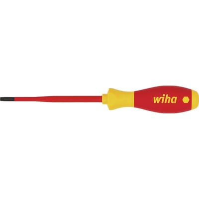 Wiha skruetrækker med TORX Tamper Resistant (med boring). Slim klinger sikrer isoleret tilgængelighed til dybtliggende skruer. Testet ved 10.000 V AC og godkendt til 1.000 V AC.