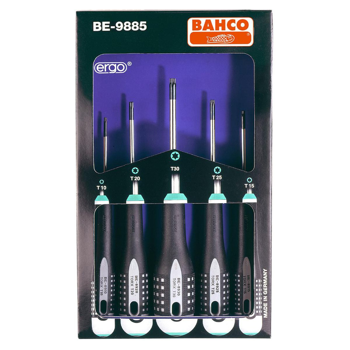 Dette Bahco skruetrækkersæt BE-9885 indeholder 5 skruetrækkere med Torx® kærv, der er designet til at give optimal komfort og ydeevne under brug.