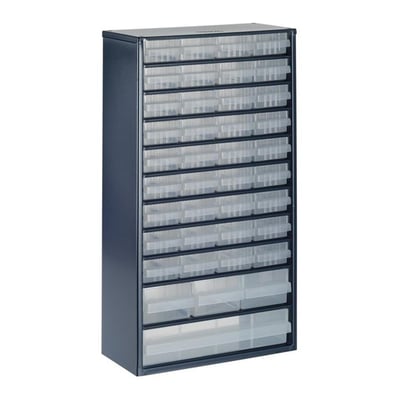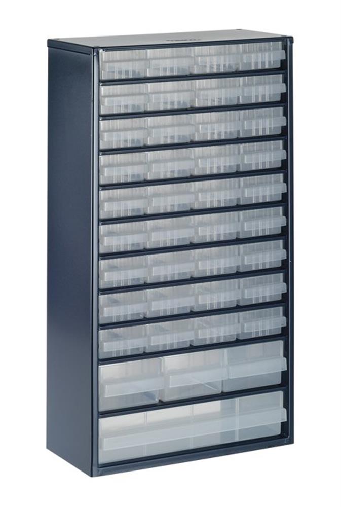 Materiale:Kabinet af lakeret stål, skufferne af polypropylen (pp)