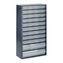 Skuffereol i 150 serien. Kabinet i lakeret stål, skuffer i polypropylen. Fås i forskellige højder og med forskellige skuffekombinationer.
