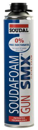 Soudafoam SMX® NBS pistol er en ekspanderende skum uden fri isocyanat. Soudafoam SMX® hærder ved optagelse af fugt og udføres bedst på moderate fugtige porøse overflader (såsom træ, beton, sten).