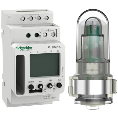 Skumringstimer til lysstyring. Programmering via enhed eller app. Justerbar tærskelværdi og forsinkelse. Med hukommelsessteder, feriefunktion og automatisk sommer/vintertid.