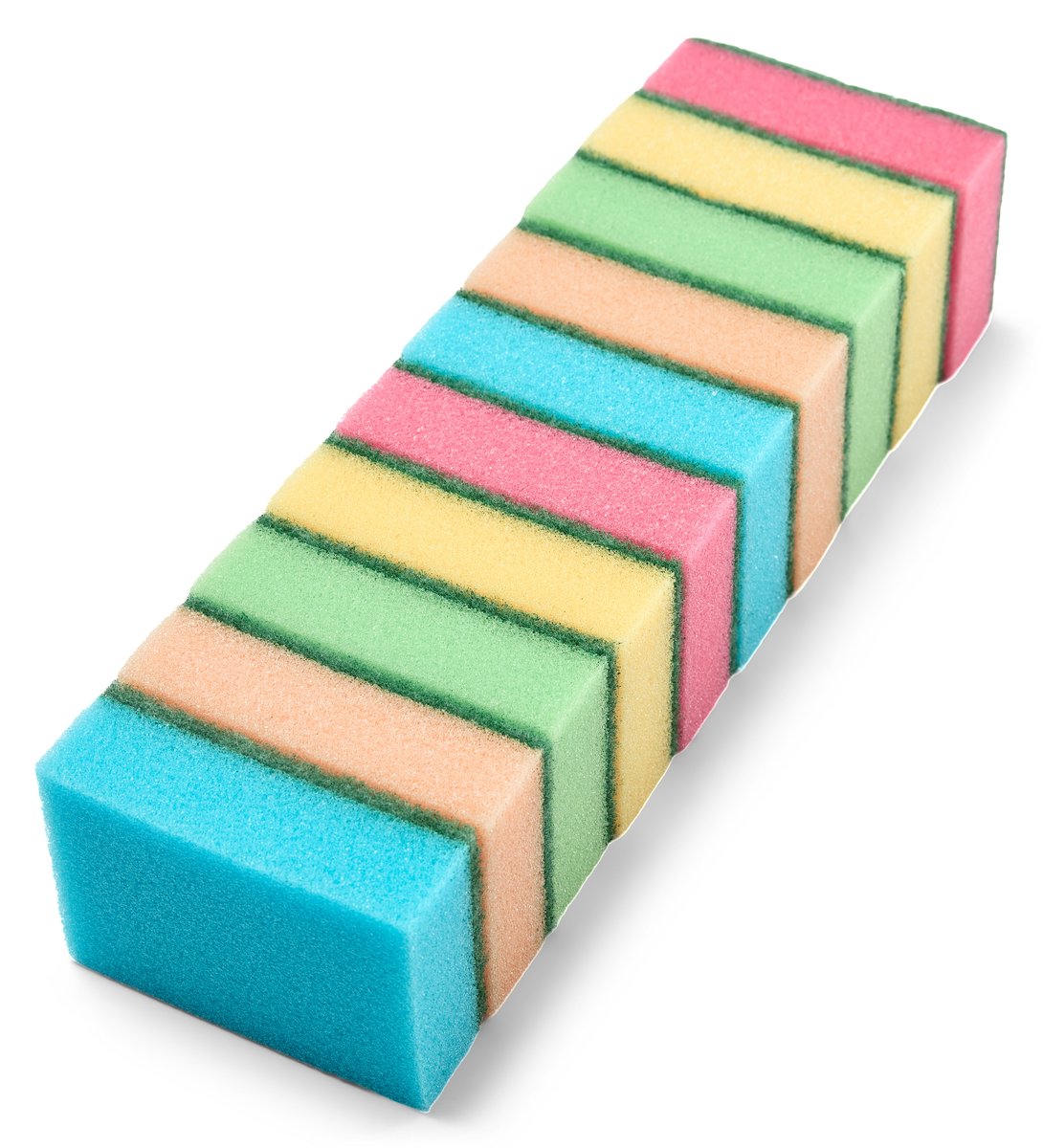 Svampenes forskellige farver lader dig huske svampens anvendelsesformål, f.eks. en farve til køkken, en til cykelrengøring og en anden til bad og toilet.