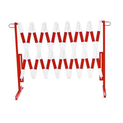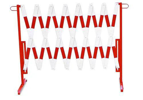 Effektiv skydeafspærring af stål med røde refleksstriber. Ideel til hurtig afspærring af byggepladser, vejbaner og parkeringsområder.